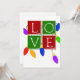 As luzes de Natal rodeiam letras de bloqueio que soletram "AMOR".