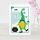 Um cartão de boas-vindas para o seu filho na Rua. Dia de Patrick, com um lindo duende dançante, segurando uma pedra de xamelo, ao lado de um pote de ouro. Há uma borda verde-escura, dupla linha e a Oração Celta original, em letra verde, ao lado do duende. O duende tem um chapéu muito alto, em um padrão verde, uma barba grande de gengibre, um nariz enorme, capas e meias listradas e calçados pretas com fivelas para combinar com sua faixa de ódio. No topo, em letras negras, está a palavra "SON" e a mensagem dentro é fácil de personalizar ou eliminar.