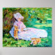 Esta bela imagem foi tirada da minha pintura original, que foi inspirada pelo trabalho de Monet. Dois filhotes Corgi apreciam a companhia da amante enquanto lê à sombra das árvores. www.corgiart.net e petart.net