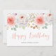 Mande seus desejos de aniversário com este cartão floral. Apresenta pêssego aquoso e pénicas brancas com folhas de eucalipto de folha de ouro verde e falsa. Este cartão de aniversário floral feliz é perfeito para os aniversários de primavera. Personalize este pêssego e cartão dourado adicionando um texto e uma mensagem frontal.