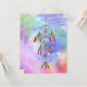 Linda tendência brilhando efeitos brilhantes penas de caça-sonhos fitas, estrelas brilhantes nebulosas sobre aquarelas, violeta azul rosa, verde, cores brancas imagem impressão