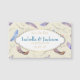Bonito e elegante guarde o lembrete do casamento. Um padrão composto por penas de aquarelas com faixas variáveis, manchas e designs simples com cores azuis, cor-de-rosa, laranja e castanho. Ramos e galhos com folhas e budas de maricas também decoram o design. O fundo é uma cor sólida de creme. Personalize com o nome da noiva e do noivo e sua data de casamento em um quadro oval de rico com uma borda de gradiente dourado.