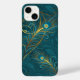 Matizes femininos, aqua e dourados em uma impressão paisley com penas elegantes de pavão com gemas faux topaz como sotaques.