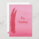 Pintura de duas penas vermelhas e cor-de-rosa sobre um fundo cor-de-rosa misturado, com o Nosso Casamento, impressa em dois Convites de Casamento lateral. Personalize facilmente o texto nos formulários de modelo.