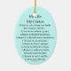 Ornament apresenta o poema "Minha vida, minha escolha" para diabetes. Faça ornamentos personalizados de suporte a diabetes usando opções personalizadas para mostrar sua consciência de diabetes para diabetes juvenil tipo 1 ou tipo 2. Dar a alguém presentes especiais de ornamento de poemas diabéticos. Minha Vida, Minha EscolhaDiabetes pode mudar meu corpo, mas eu escolho minha vida... Eu escolho abraçar a paz. Eu escolho construir amizades. Eu escolho acarinhar as boas memórias. Eu escolho ter graça. Eu escolho ter coragem. Eu escolho acreditar na esperança. Eu escolher Eu escolho conhecer o amor.Eu escolho querer a minha vida.Sentir beleza, Minha Vida-por Laurel Latto