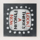 Um design de animais tipográficos irreverentemente estranho que diz "Olha! Há um pinguim agora". Ele apresenta texto preto e vermelho em um retângulo branco com pontos brancos engraçados e brincalhões ao redor dele, tudo em um fundo de cinza.
