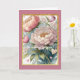 Este design de cartão é um pastel em estilo aquarela de flores de peônia com uma borda dourada com brilho falso e um fundo rosa. É sugerido para um cartão de Pensando em Você, mas também pode ser personalizado como um cartão de aniversário ou de melhoras.