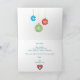 Cartão de Natal para um amigo, com um ursinho de pelúcia bonitinho na janela, segurando um cartaz lendo "Pensando em você". As seções de dentro têm uma mensagem personalizada, além de bolhas de Natal e um coração de estilo escandinavo.