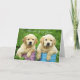 Quem você consegue resistir ao rosto bonito de um cachorro Labrador Retriever? Este doce cartão de saudação apresenta dois filhotes de laboratório amarelos tocando em folhas roxas e azuis em um campo de pastagem verde. A saudação dentro diz: Quando penso nas pessoas que realmente significam muito para mim, os meus pensamentos voltam-se sempre para vós.