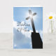 Fotografia original a cores profissional com uma silhueta de uma cruz de igreja com efeito estrela brilhante iluminado contra o céu azul e nuvens brancas. O script "Pensando em Você" é escrito na frente e "Seu Texto Aqui" está no dentro para personalizar ou excluir facilmente sua mensagem mais tarde. Perfeito para um evento cristão especial como batismo, primeira comunhão, confirmação, Páscoa ou morte. Um belo, inspirador, pensador e simbólico cartão religioso, especialmente bom para qualquer padre, ministro, freira ou clérigo, assim como para qualquer amigo ou membro da família em tempo de perda ou necessidade espiritual, para avisá-los que estão em seus pensamentos e orações.