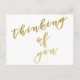 NewParkLane - Cartão Postal Elegante, com 'Pensando em você' em tipografia elegante de rótulo em ouro falso.