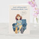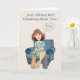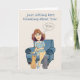 Pensando em você cumprimentando o cartão com uma mulher sentada em uma cadeira com duas gatinhos por ela e uma bolha de pensamento que diz VOCÊ nela! Este cartão pode ser o dia de qualquer um!
