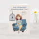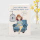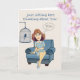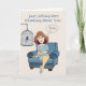 Pensando em você cumprimentando o cartão com uma mulher sentada em uma cadeira com um pássaro em uma gaiola por ela e uma bolha de pensamento que diz VOCÊ nela! Este cartão pode ser o dia de qualquer um!