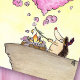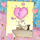 Um ouriço bonito faz um grande, rosa, sinal de fumaça em forma de coração.