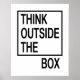 Adicione algum humor e inspiração ao seu espaço de trabalho com este divertido poster de motivação, com a frase clássica 'Pense fora da caixa'. Disponível no impressão e no download digital.