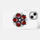 Pentagrama preto com padrão, decorado com floração, rosas vermelhas com folhas em fundo branco. Tatuagem.