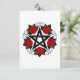 Pentagrama preto com padrão, decorado com floração, rosas vermelhas com folhas em fundo branco. Tatuagem.