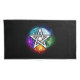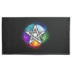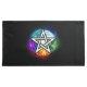 Pentagrama luminoso desenhado artificialmente com cinco elementos mágicos, água, terra, fogo, astral, ar sobre fundo negro. Pentagrama Wiccan. Wicca