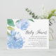 O convite para chás de fraldas chic apresenta ilustrações florais de peônias de cor d'água em tons de azul-de-flor-pálida, acentuadas com folhas verdes-peludas. Personalize com os detalhes do seu chá de fraldas alinhados à direita. Cartões invertidos a azul claro sólido.