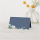 Estes cartões azuis de comida de buffet são perfeitos para um evento elegante. O design floral apresenta flores cor-de-rosa pincel, pêssego e aquarela brancas em um fundo azul-marinho. Compre em massa e escreva os nomes de comida e bebida nos cartões impressos quando eles chegarem com uma caneta branca.