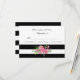 Cartão de resposta de casamento na moda e romântico feito em branco, com padrão riscado em preto e branco, ao longo do fundo e cobrindo a parte traseira do cartão. Belo trabalho de arte de aquarela de flores cor rosa, enfeita o meio inferior da frente. Personalize o texto preto para seu dia especial. Os produtos correspondentes estão disponíveis.