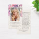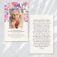 Este cartão poema memorial pode ser entregue como guardião numa Celebração da Vida ou num serviço funerário ou enviado como homenagem especial a quem não pôde estar presente. Este cartão pode ser personalizado com uma foto favorita e sua escolha de oração ou poema. A fotografia é para fins ilustrativos e pode ser alterada para uma de vocês.