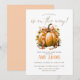 Pequeno Pumpkin com Ribbon Babyshower Invitation com uma bela abóbora com fita laranja, perfeita para sua festa de chá de fraldas de outono!
