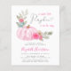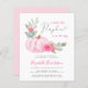 Um convite de chá de uma menina fofa e econômica com "uma doce abóbora está a caminho" escrito numa mistura de tipografia rosa e uma escrita de cinza macia com um inchaço cardíaco, e buquê de aquarela de uma abóbora rosa pastel, flores e verde. Personalize facilmente o nome da mãe em um roteiro rosa moderno e os detalhes do chá em uma simples tipografia de cinzas mole.