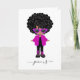 Convite de aniversário com meninas negras da moda com jaqueta rosa-crochê lisa, botas e óculos escuros.