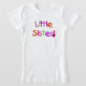 Pequena camiseta Irmã, fusíveis, cartas, sacos de tote e outros artigos irmãozinhos com texto brilhante multicolorido.
