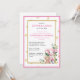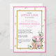 Adorável chá de fraldas plano convida para um "carneiro doce". Possui um borrego bebê com realces cor-de-rosa na parte inferior ao lado de um ursinho de pelúcia - e há verde atrás deles, uma estrutura dourada ao redor da caixa de texto, e estrelas douradas e cerejas com uma borda cor-de-rosa ao redor de todo o design. Cada linha de texto é facilmente atualizada.