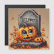Uma pequena abóbora e lápide de Halloween.