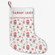 Esta linda e única meia de Natal apresenta soldados de brinquedo quebra-nozes pintados à mão com aquarela e adoráveis brinquedos vintage dispostos em um padrão caprichoso. Encontre itens correspondentes na Coleção de Quebra-Nozes de Natal.