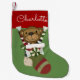 UMA MEIA DO NATAL COM ILUSTRAÇÃO DE UM BRINQUEDO DO URSO DE URSINHO DENTRO DE UMA MEIA DO NATAL. PODE SER PERSONALIZADA COM UM NOME
