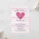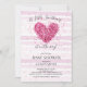 Little Sweetheart Girls Chá de fraldas Invitation apresentando um coração brilhante cor-de-rosa em um fundo de faixa rosa e branca com um retorno correspondente.