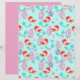 Pequenas sereias doces nadando em recifes de coral com peixes e lençóis marinhos com papel de raspadeira com impressão de bolinhas rosa/aqua inversa.