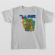 Pequenas T-shirts de primeiro aniversario Dino, fatos-chave, cartões, autocolantes, botões de aniversário, sacos de tota, guardas, e outros roupas de primeiro aniversario de dinossauro e presentes com um dinossauro sorridente verde com balões, chapéu de festa e um presente!