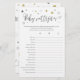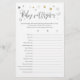 Este cartão de jogo de chá de fraldas apresenta um script moderno sobre fundo branco com cinzas e estrelas douradas, perfeito para uma festa reveladora de gênero! Verifique todos os jogos desta coleção abaixo.