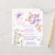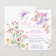 Pequena borboleta de flores silvestres chá de fraldas convite para uma menina. Flores de campo e borboletas cor-de-rosa-rosa, design cinzenta.