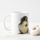 Pequenas galinhas peludas doce caneca de café
