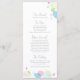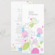 Pequenas pétalas de flores de confete, menus de casamento ou janto formal. Flor moderna e simples, de dupla face, com um menu de janto cor-de-rosa, verde e azul. Desenhada e projetada exclusivamente por Sarah Trett para www.mylittleedenweddings.com