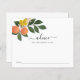 O cartão de atividade do chá de fraldas apresenta uma ramificação de laranjas e limões. O cartão de "conselho" aos hóspedes que compartilhem conselhos para que os pais se preparem para o bebê.