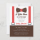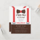Um homenzinho está a caminho! Celebremos com um dia especial! Este convite para chás de fraldas moderno e minimalista apresenta um arco bolinhas castanho escuro com suspensórios de precintas vermelhas. Paleta colorida de vermelho e marrom para a chegada do menino! Personalize facilmente com os detalhes do seu chá de fraldas.