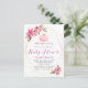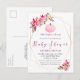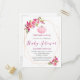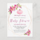 Flores cor-de-rosa e quadros geométricos de ouro rosa para celebrar o seu chá de fraldas. Uma abóbora rosa no topo. Editar áreas de texto para criar uma parte de chá de fraldas exclusiva e especial.
