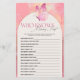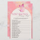 Teste o conhecimento dos seus hóspedes com o nosso Bebê Rapariga no Bloom Chá de fraldas que conhece o melhor jogo de Mamães! Apresentando um fundo cor-de-rosa macio com borboletas cor-de-rosa delicadas a flutuar sobre o design. Este jogo divertido é uma maneira perfeita de ver quem conhece melhor as mamães. Ele acrescenta um toque pessoal e lúdico ao seu chá de fraldas, mantendo o tema floral perfeitamente consistente. Não se esqueça de explorar os itens correspondentes.
