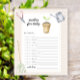 "Um pequeno broto está a caminho". Celebrar com esta festa de chá de fraldas de broto! A aquarela brota num pote, numa alavanca, numa lata de água e em tesouras de poda.
