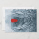 Pequeno Chapeuzinho Vermelho em um inverno nevado caminha pela floresta. Conseguem ver o Lobo Mau a uivar à distância? Uma versão granulada de uma pintura de aquarela negativa.