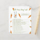 Convites para chuveiros de bebês neutros em termos de gênero. Apresentando o ditado "UM PEQUENO BUNNY ESTÁ A CAMINHO!", uma ilustração de um coelho aquoso (coelho) com cenoura em patas, e muitas cenouras cor de laranja. Itens correspondentes disponíveis.