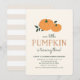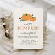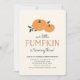 Convide convidados para a sua pequena festa de aniversário de outono com nossos adoráveis convites de festas de abóbora. Design apresenta duas ilustrações laranja de abóbora com "nossa abóbora está girando" em caracteres de caça verde e laranja abóbora. Personalize com seus detalhes de festa de aniversário usando os campos fornecidos.