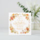 Pequeno Convite de aniversário Floral de outono de Abóbora. Apresentando uma imagem personalizada do script de caligrafia "Pumpkin Spice & All Nice". Fall Foliage Floral Watercolor Wreath no outono, na frente e no verso da placa. As cores de fundo podem ser alteradas. Este cartão também pode ser editado para aniversários de adultos. Cartão Quadrado.